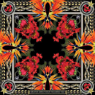 A statement from the fashion house: "the artwork’s bold colours and angular lines are symbols of masculinity for two of the most iconic rap figures of our time. Riccardo Tisci naturally incorporates references to his long time signature codes, from meticulously engineered prints to blurred religious images, the strength of these visuals being to bring his Couture techniques and vision to image printing.”
